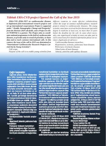 Kalp hastalığının diğer formları elektronik başvuru sistemi kullanıla- ERA-CVD projesi ve 2019 yılı çağ-
