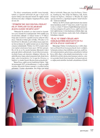 olan toplam uluslararası hasta sayısı 500 bini aşmıştır. ların yerlileştirilmesi konusuna büyük önem verdiğini,