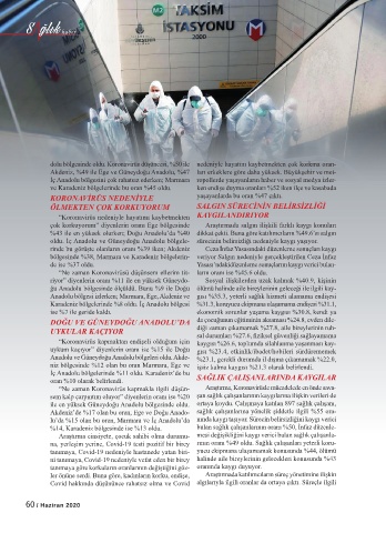 ve Karadeniz bölgelerinde bu oran %45 oldu. ken endişe duyma oranları %52 iken ilçe ve kasabada