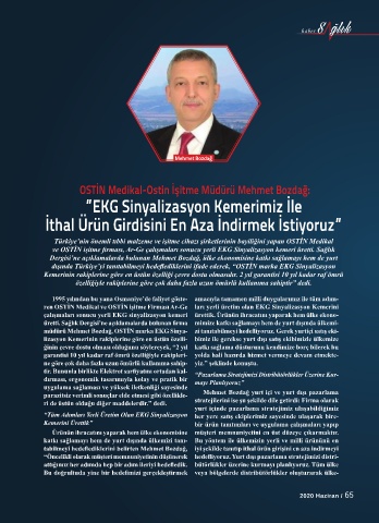 müdürü Mehmet Bozdağ, OSTİN marka EKG Sinya- zi tanıtabilmeyi hedefliyoruz. Gerek yurtiçi satış eki-