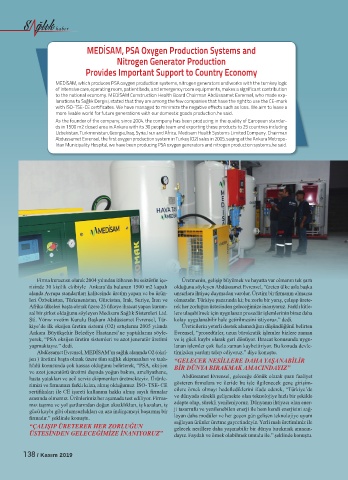 yerek, “PSA oksijen üretim sistemleri ve azot jeneratör üretimi ve iş gücü kaybı olarak geri dönüyor. İhracat konusunda uygu-