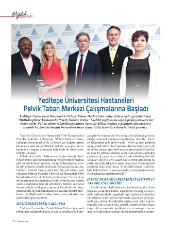 Yeditepe Üniversitesi Pelvik Taban Merkezi’nde mul- ürogenital ve anorektal problemlerde ve menopoz öncesi,