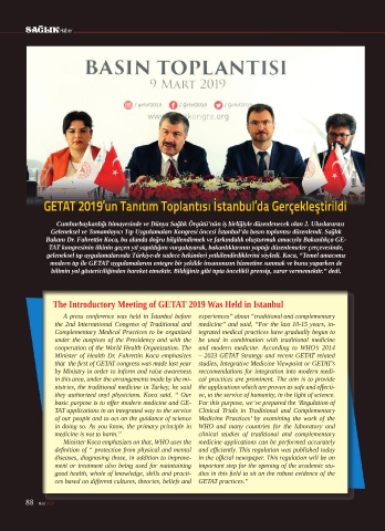 Health Organization. The Minister of Health Dr. Fahrettin Koca emphasizes that the first of GETAT congress was