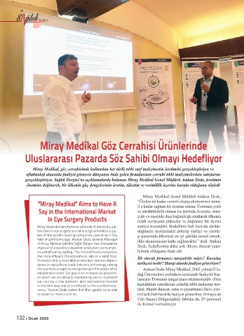 gerçekleştiriyor. Sağlık Dergisi’ne açıklamalarda bulunan Miray Medikal Genel Müdürü Atakan Dede, üretimin