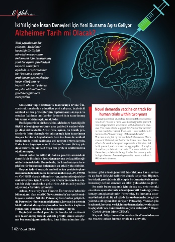 amiloid ve tau proteinlerinin toplanmasını önleyen ve human trials within two years