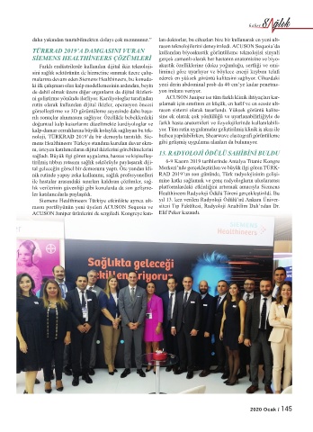 Siemens Healthineers Türkiye etkinlikte ayrıca ult- yıl 13. kez verilen Radyoloji Ödülü’nü Ankara Üniver-