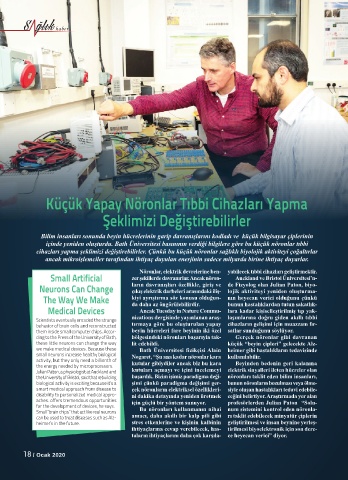 ding to the Press of the University of Bath, bölgesindeki nöronları başarıyla tak- Gerçek nöronlar gibi davranan
