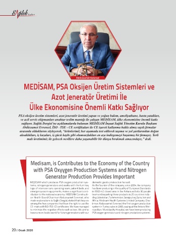 sağlıyor. Sağlık Dergisi’ne açıklamalarda bulunan MEDİSAM İnşaat Sağlık Yönetim Kurulu Başkanı