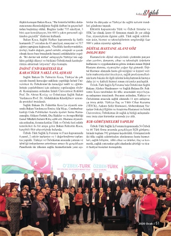 ilişkin konuşan Bakan Koca, “Bu forumla birlikte doku- lımlar ile dünyada ve Türkiye’de sağlık turizmi trend-